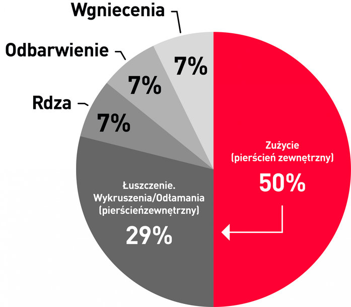 3) Powszechne mechanizmy uszkodzeń łożysk baryłkowych stosowanych w maszynach i urządzeniach do produkcji stali
